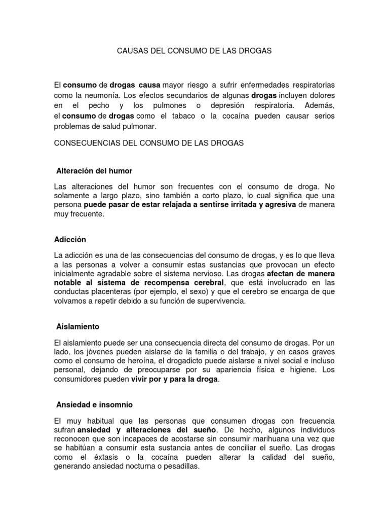 La adicción es una de las consecuencias del consumo de drogas y es lo que lleva.